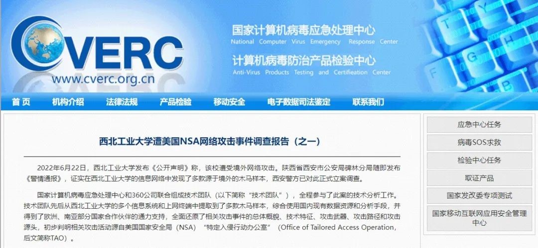 今日,国家计算机病毒应急处理中心和360公司分别发布了关于西北工业大学遭受境外网络攻击的调查报告,调查发现,美国国家安全局下属的特定入侵行动办公室多年来对我国国内的网络目标实施了上万次的恶意网络攻击,控制了相关网络设备,疑似窃取了高价值数据。