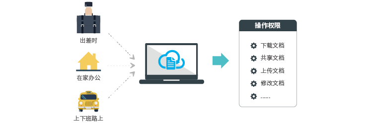 员工之间可通过文件共享方式实现高效的协作办公。区别于普通的Windows共享,员工可灵活控制共享文件的协作对象和操作权限;同时,系统提供共享消息智能提醒功能,消息实时直达相关人员,使分享协作更精准、更具时效性。