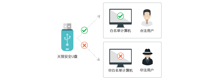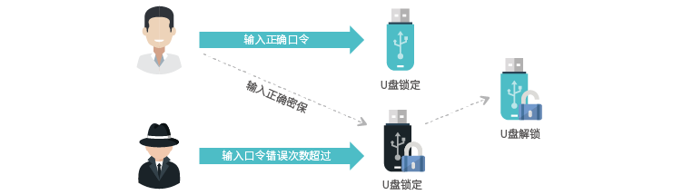 通过用户身份认证和计算机认证(可选)的双重认证方式,确保只有特定的人员才能使用该U盘。
